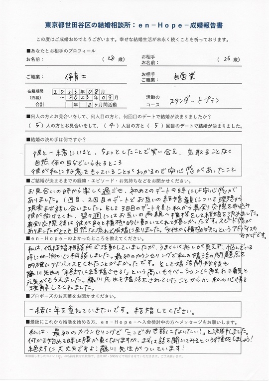他相談所の婚活に苦戦中、en-Hope-に相談。 的確にアドバイスをくれたことがよかった。