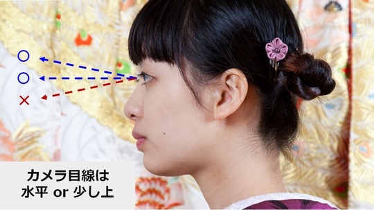 女性は少し高いくら位の角度から見てもらったほうが、小顔に見えますし、目はぱっちりと見えますよ!