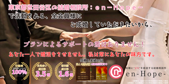 IBJ Awardを開業から連続受賞している東京都世田谷区の結婚相談所:en-Hope-は、代表カウンセラーが完全プロデュースしています。そして、開業から毎年成婚退会者を創出しています。