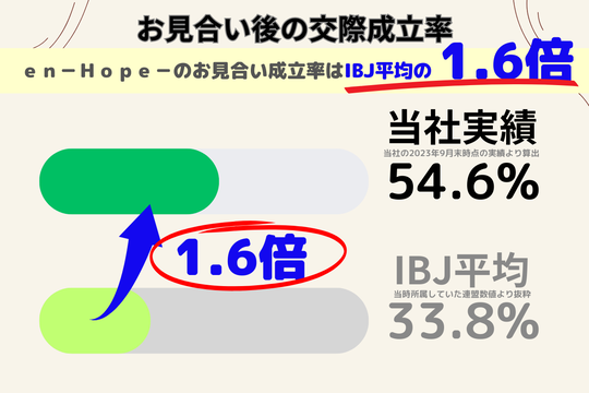 当相談所の実績は【54.6%|約1.6倍です】です。
