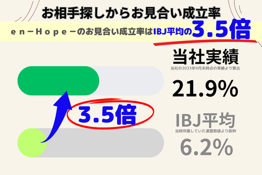 平均が【6.2%】のところ、当相談所の実績は【21.9%|約3.5倍です】です。